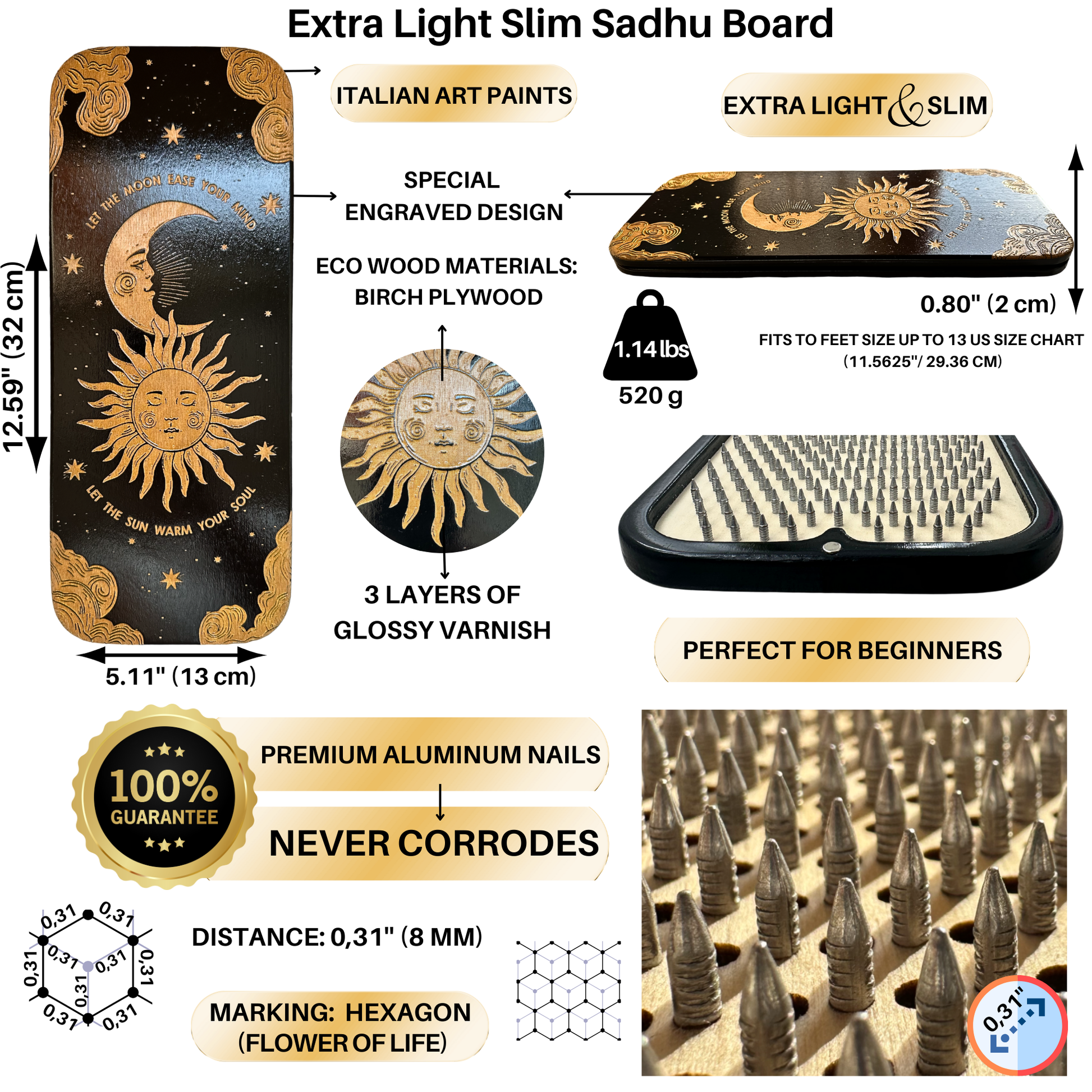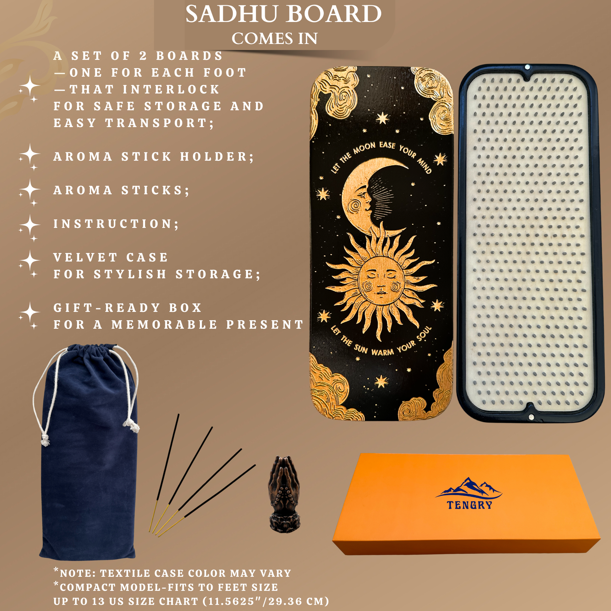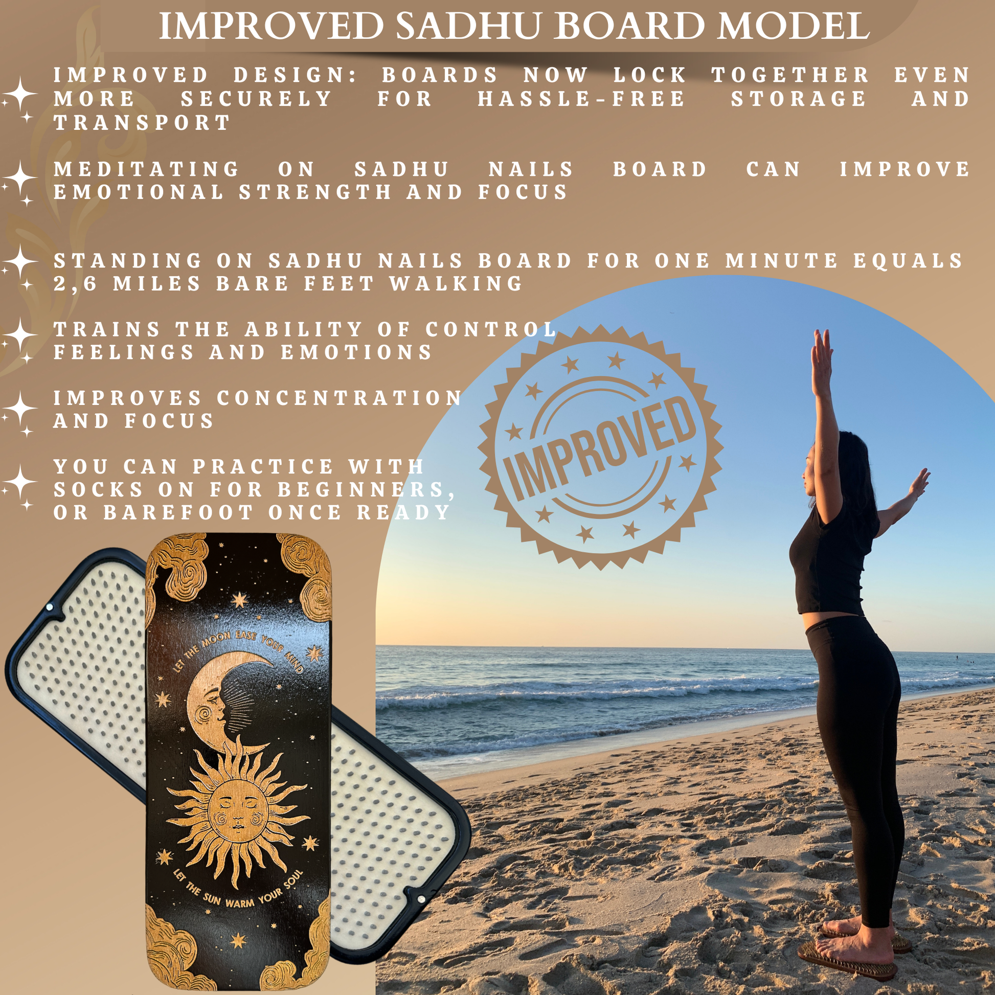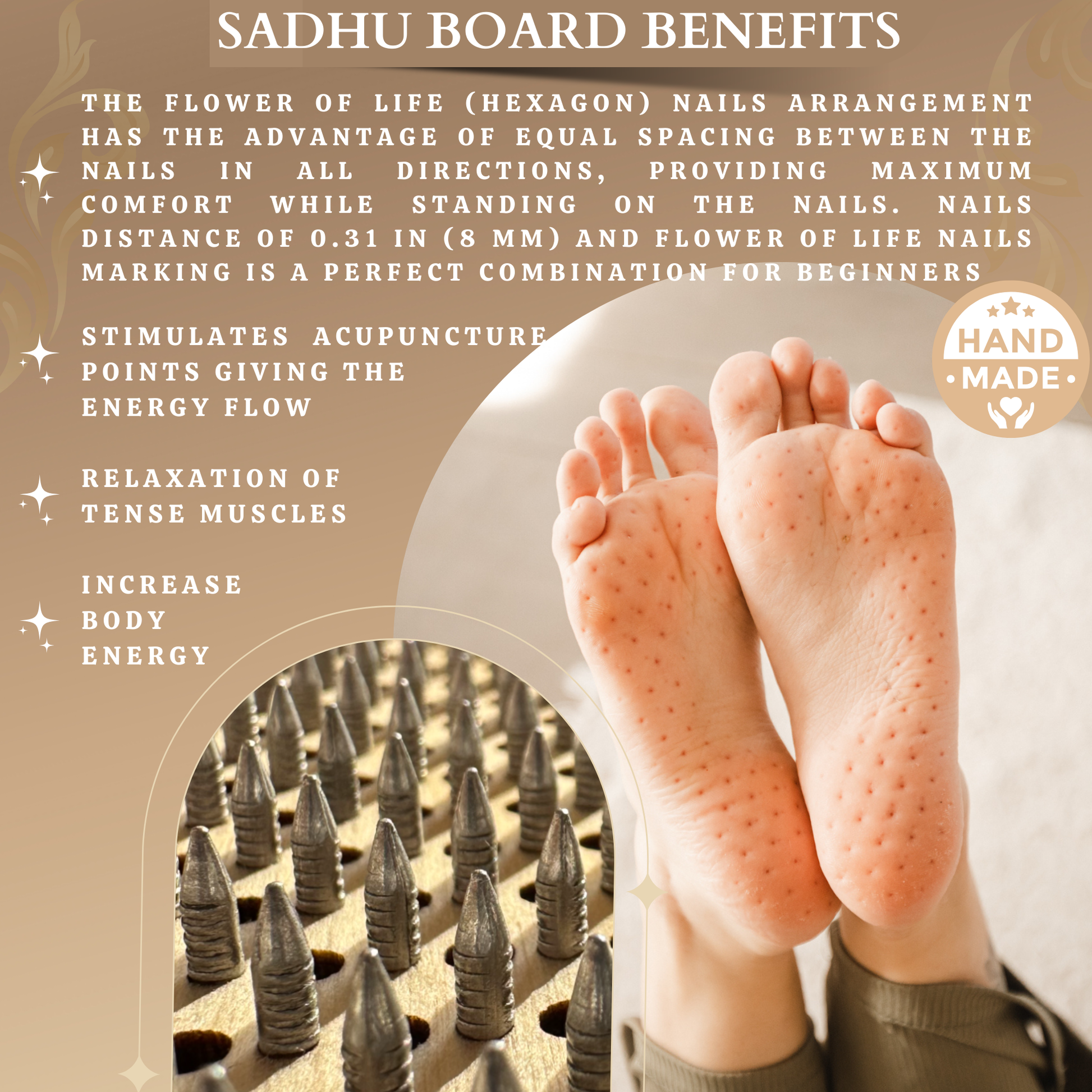 - An excellent Sadhu board designed for Yoga practice, meditation, relaxation and perfect for feet massage through standing on nails;
